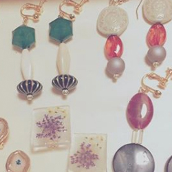 アレンジヘアーのご予約も承ります。 また、店内ではハンドメイドのアクセサリーも販売しております。